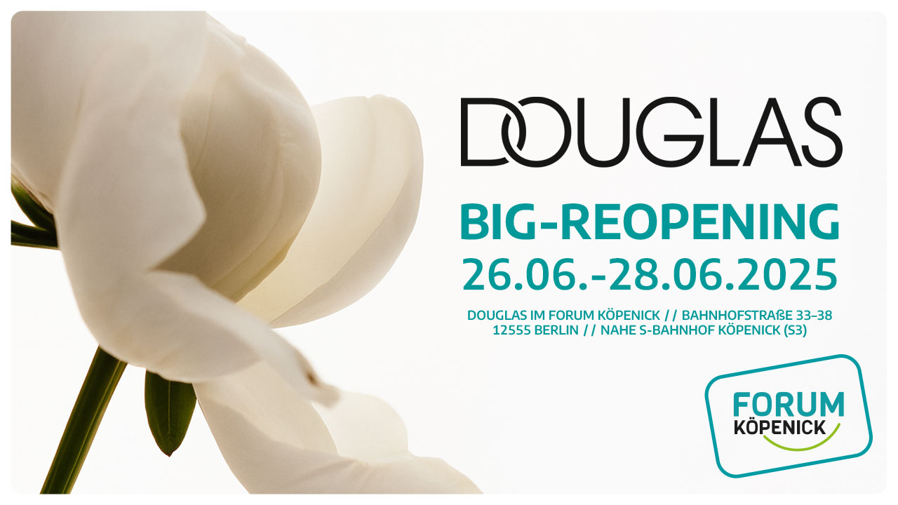 Ob für einen kurzen Besuch oder einen ausgedehnten Beauty-Bummel – das Big Reopening von Douglas im Forum Köpenick ist die perfekte Gelegenheit, um Neues zu entdecken, Dich verwöhnen zu lassen und echte Highlights zu erleben.